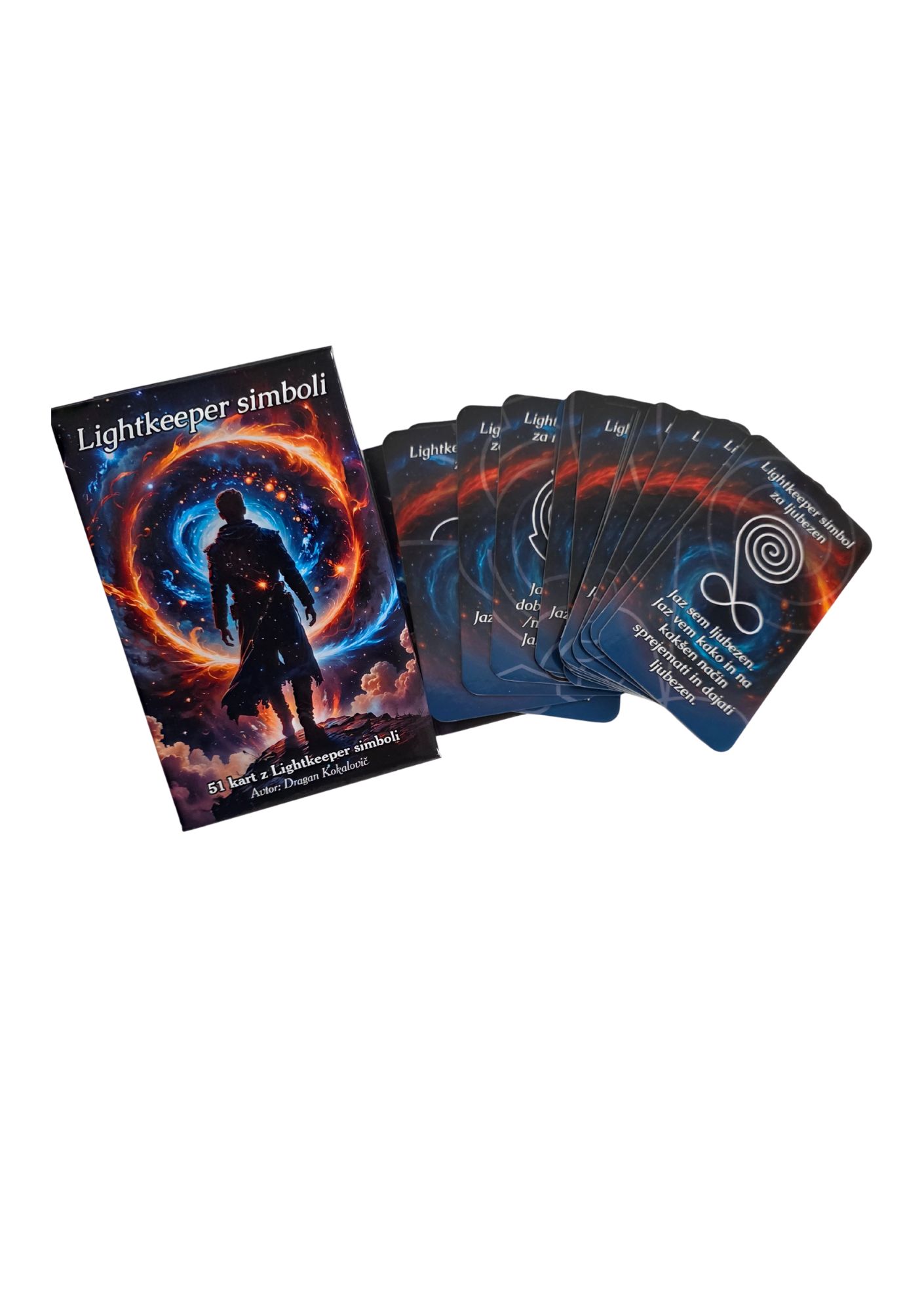 Odkrij svojo pot do globlje notranje moči, harmonije in energijske podpore z unikatnim kompletom 51 kart z Lightkeeper simboli.